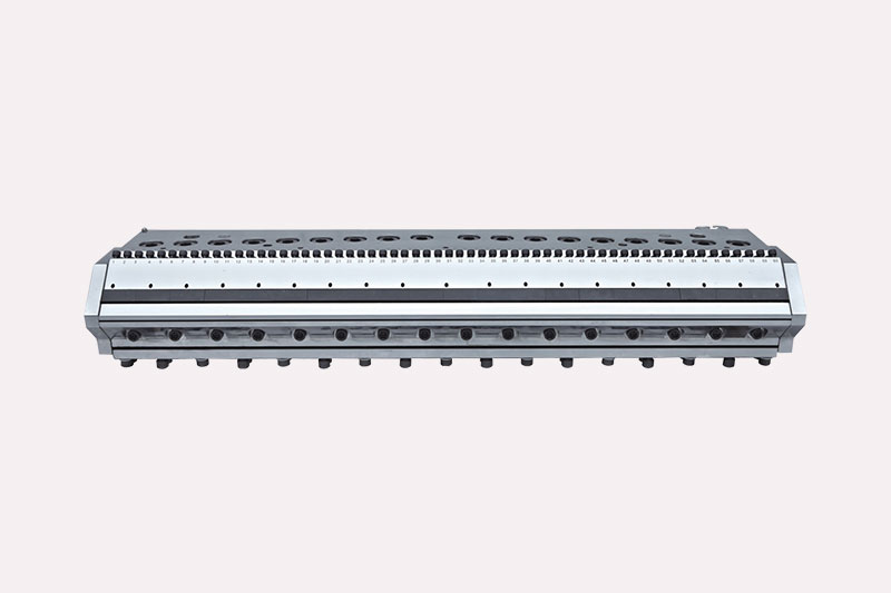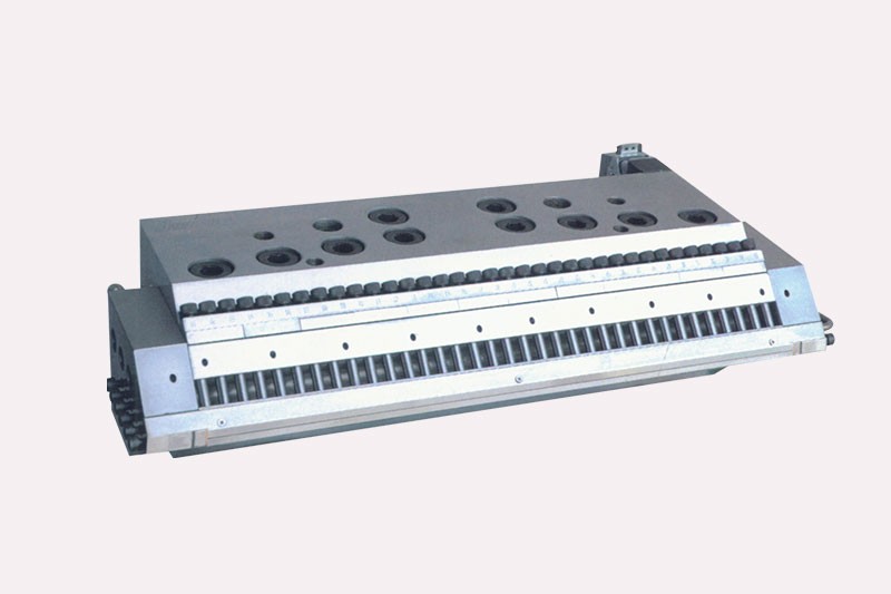 重型模頭采用標準衣架式流道設計,上模唇可調、下模唇可換及90度調節阻流棒調節裝置。能夠滿足不同厚度制品的需求。適用于生產寬度在5000以下,厚度0.8-15m的ABS、PE、PP、PS厚板。